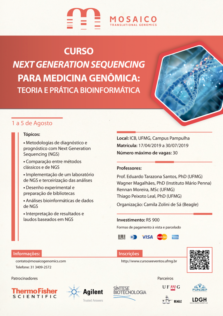 O curso é uma parceria entre o Laboratório de Diversidade Genética Humana (LDGH), grupo de pesquisa da UFMG reconhecido por sua excelência internacional em genética humana e biologia computacional, e a Mosaico Translational Genomics, que atua no ecossistema de inovação e saúde. Os organizadores do curso têm mais de uma década de experiência, acumulando um background de conhecimentos e computacional que garante a prestação de serviços diferenciados de training e outros produtos inspirados no conceito de qualidade total, combinando o máximo rigor científico com a aplicação crítica dos conceitos e ferramentas mais atuais da genômica e da biologia computacional aplicadas à saúde humana.