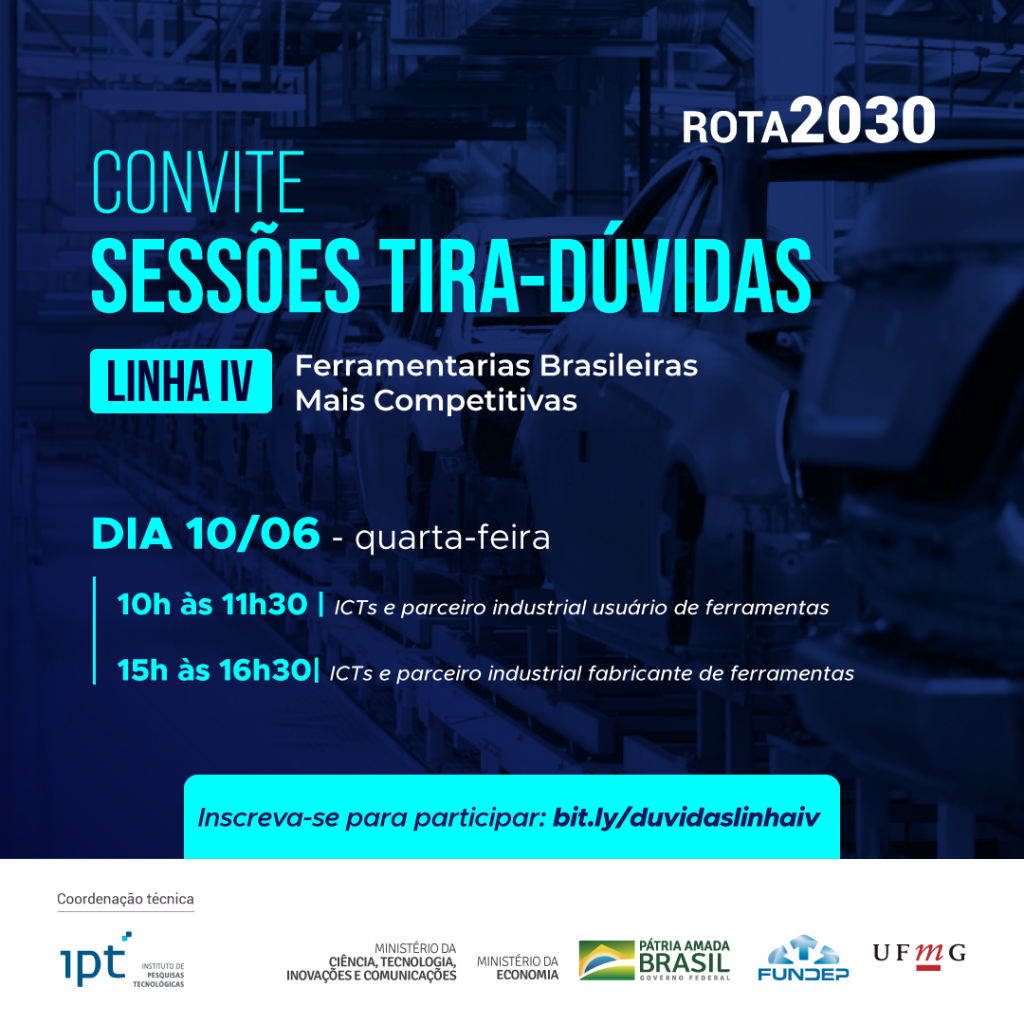 Fundep e IPT convidam para lives tira-dúvidas especiais sobre o Programa Rota 2030, chamadas públicas da linha IV Ferramentarias Brasileiras Mais Competitivas.