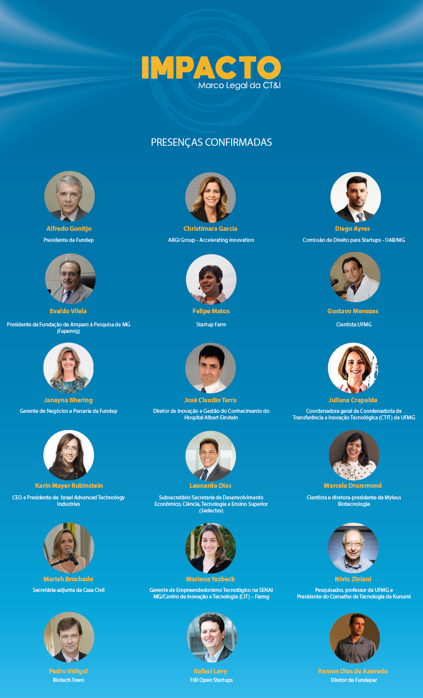 Diante das perspectivas de oportunidades que a nova regulamentação apresenta, a Fundação de Desenvolvimento da Pesquisa (Fundep) vai promover o encontro Impacto – Marco Legal da C,T&I. No formato de painéis e rodadas de conversa, o evento reunirá especialistas de renome nacional e internacional para explorar todos os impactos que as novas possibilidades podem gerar para universidades e centros de pesquisa, empresas, startups e spin-offs.